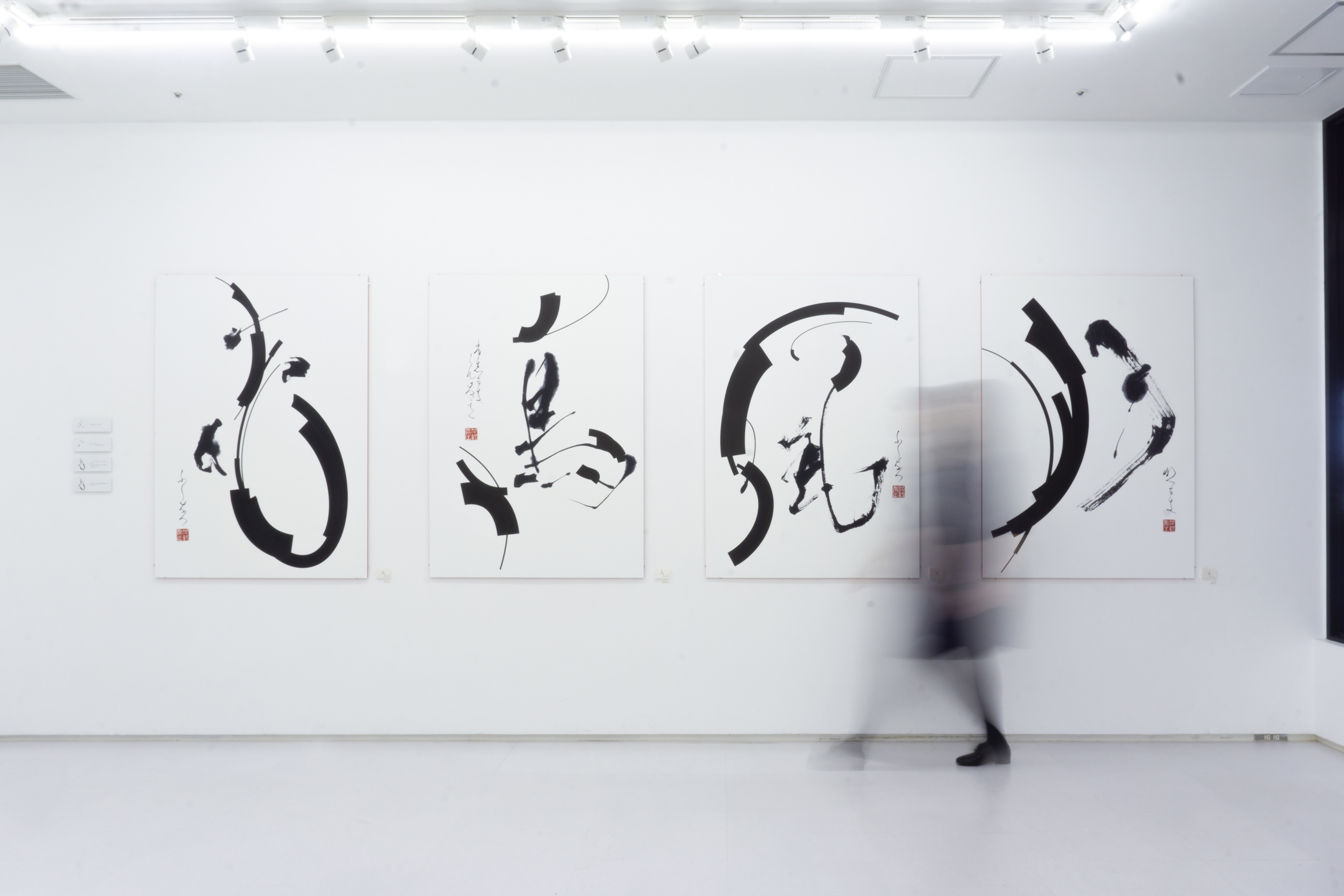 書画家の夏生嵐彩氏とグラフィックデザイナー藤巻洋紀氏のコラボ展「筆とマウス」 2m×3mの巨大な和紙に直筆で描かれた作品の上にUVインクジェットでプリントした作品や、 ホワイト厚盛りの立体作品などを担当しました。